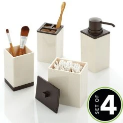 MDesign Oval Slim Plastic Small Trash Can Wastebasket – White/Chrome