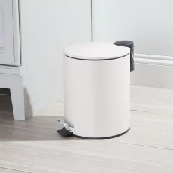 MDesign Small Round Bathroom 1.25 Gallon Trash Can Wastebasket, 2 Pack, White