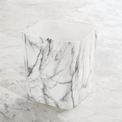 MDesign Small Metal 2.3 Gallon Trash Can, Square Garbage Wastebasket Bin, Marble