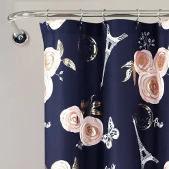 Lush Décor Lush Decor Vintage Paris Rose Butterfly Script Shower Curtain