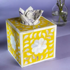 GAURI KOHLI Jodhpur Mother Of Pearl Tissue Box Cover – Mustard