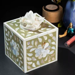 GAURI KOHLI Jodhpur Mother Of Pearl Tissue Box Cover – Olive