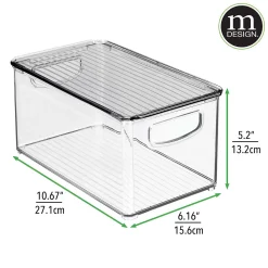 MDesign Deep Plastic Bathroom Storage Bin Box, Lid/Handles, 2 Pack, Clear/Pink