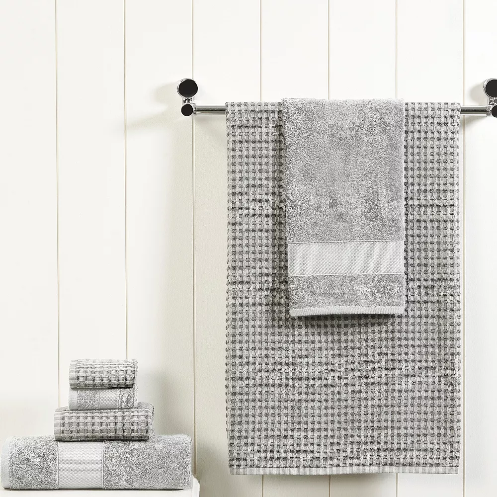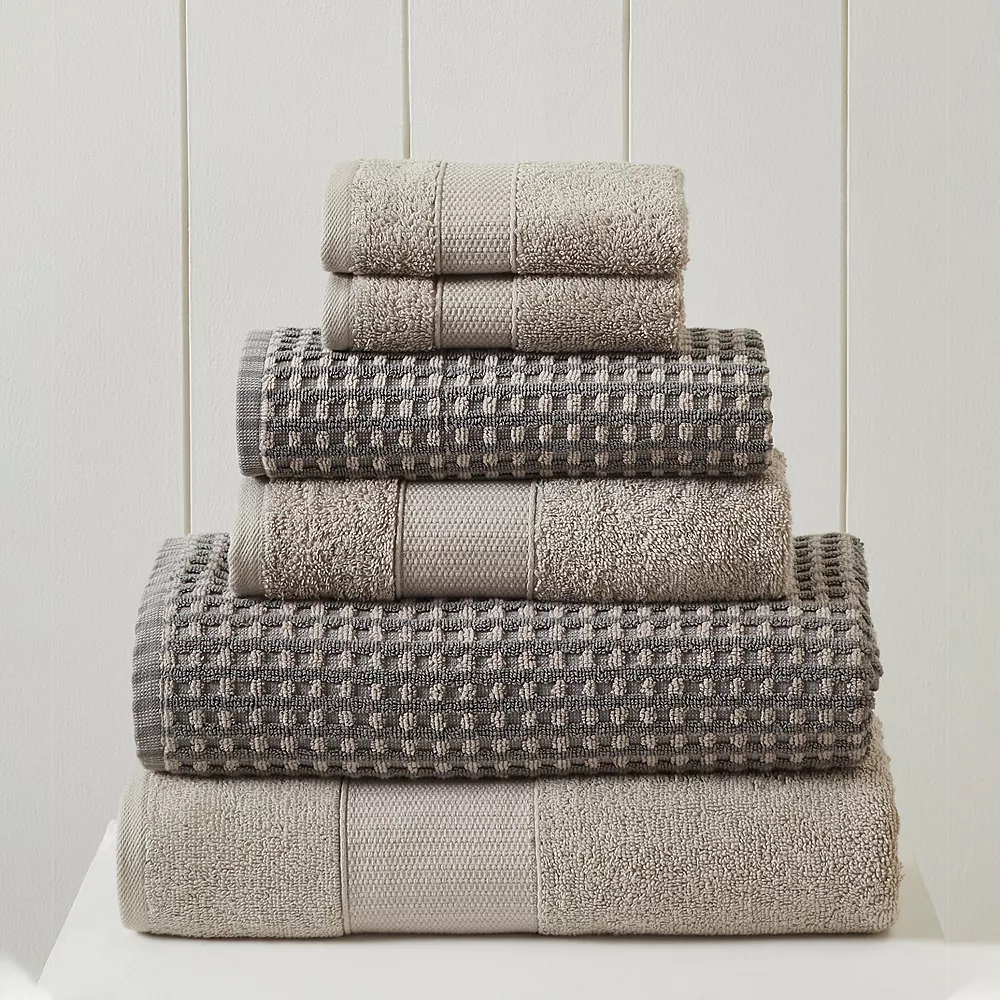 Complete your bathroom’s aesthetic with this environmentally-friendly Amrapur Modern Threads Cobblestone 6-piece bath towel set.