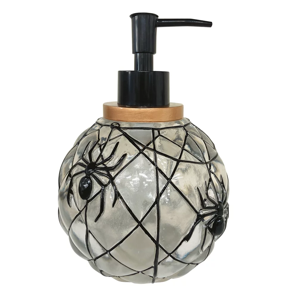 Add a spooky addition to your bathroom with this Avanti Clear Pumpkin Spider Soap Pump.