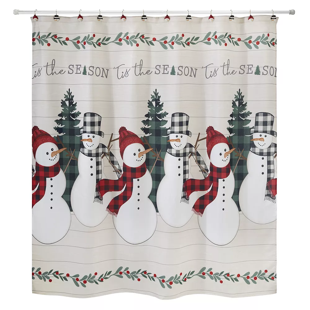 Add a fun and festive touch to your bathroom decor this holiday season with this Avanti Rustic Pals snowmen shower curtain.