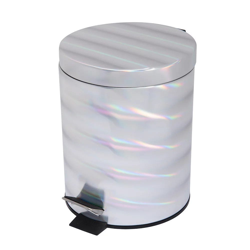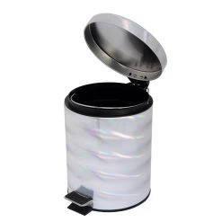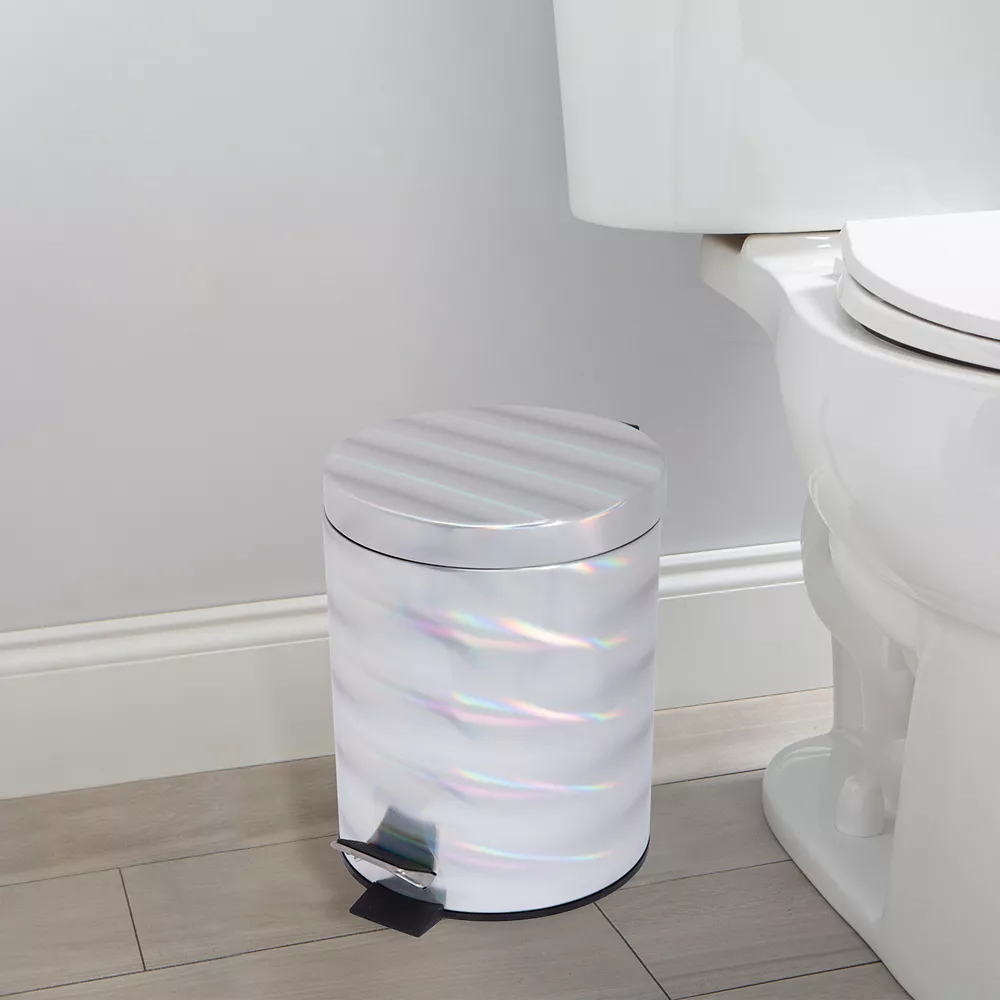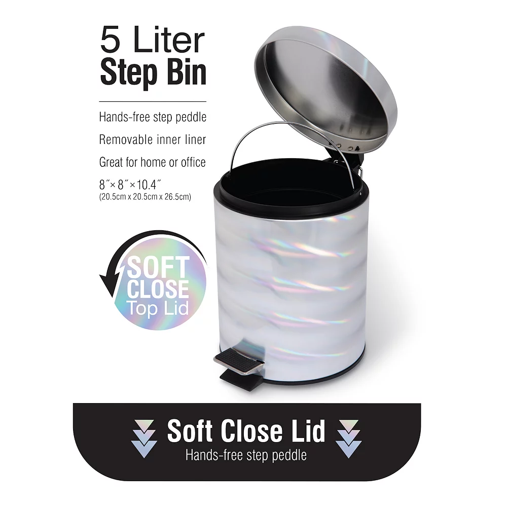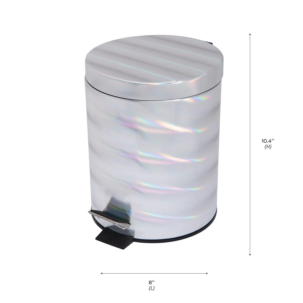 Keep your bathroom organized and tidy with this Bath Bliss Holographic Round Step Pedal Trash Can.
