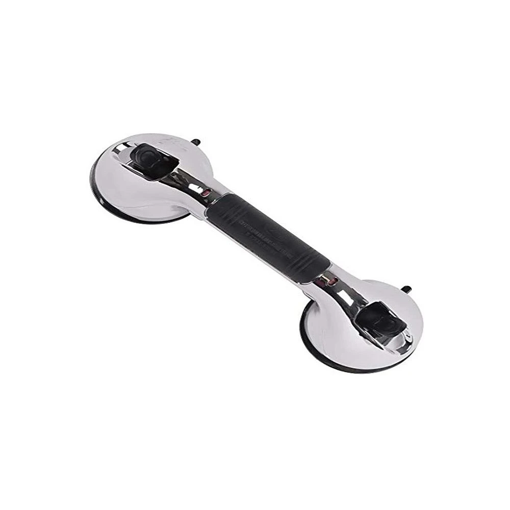 - 12 INCH, CHROME, ULTRA GRIP bathroom grab bar for tubs and showers assists persons entering or leaving the bathtub or shower. The ultra strong dual locking suction cups provides a safe and secure hold mounted to any smooth flat and non-porous surface.