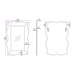 When you want to add a touch of glam to your room, go with the exquisitely crafted Antonella Mirror. Its curved mirrored frame accents the beveled edges and creates a whimsical look. Hang it on a bright yellow backdrop to create a more fun look or pair it with faux antlers for added style. Beveled 24 x 36 mirror has a high quality silver backing. Ready to hang either vertically or horizontally with pre-attached hanging mounts. Curved mirrored frame adds whimsy to the decor. Hangs either vertically or horizontally. Pre-attached D-ring hanging mounts. Beveled glass edges have been cut at an angle to create a framed look and add dimension. This mirror is sure to be the focal point of the room. Overall dimensions: 24 x 36 inches. Surface Shape: Flat. Purposeful Distressing Type: No Distressing. Mirror Height – Top to Bottom: 25.875. Mirror Width – Side to Side: 14.125. Largest Dimension: 35.375. Trend: Casual. Size: Large (3O-in to under 5O-in H). Edge Type: Beveled. Mounting Bracket Included: Yes. Mounting Hardware Included: No. Tilting: No. Shelf Included: No. Wood Species: Pine.
