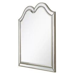 Give your contemporary decor a classy update with the simple yet stylish Dalia Mirror! The beveled mirror has a unique symmetrical shape with scalloped edges that complements neutral and bright tones alike and adds a touch of elegance in your home. With a minimalistic design, this mirror is sure to be the focal point of any room it is placed in. Beveled 24 x 30 mirror has a high quality silver backing. Ready to hang either vertically or horizontally with pre-attached hanging mounts. Scalloped convex frame adds character to your room. Hangs either vertically or horizontally. Pre-attached D-ring hanging mounts. Beveled glass edges have been cut at an angle to create a framed look and add dimension. This mirror is sure to be the focal point of the room. Overall dimensions: 24 x 30 inches. Surface Shape: Flat. Purposeful Distressing Type: No Distressing. Mirror Height – Top to Bottom: 29.875. Mirror Width – Side to Side: 22.875. Largest Dimension: 30.5. Trend: Casual. Size: Large (3O-in to under 5O-in H). Edge Type: Beveled. Mounting Bracket Included: Yes. Mounting Hardware Included: No. Tilting: No. Shelf Included: No. Wood Species: Pine.