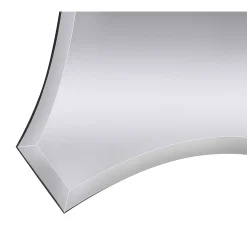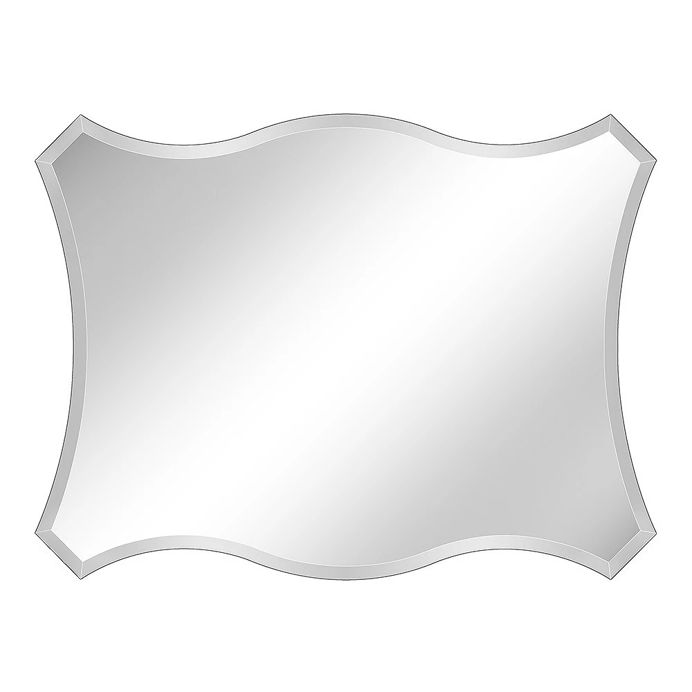 Give your modern room a little shine with our beveled Merritt Mirror. Featuring a unique symmetrical design reminiscent of European quatrefoil, this elegant mirror adds a touch of sophistication to any room and opens up space. Use two in a row to add that extra dimension or pair it with a minimalist artwork for a more timeless look. Beveled 24 x 32 mirror has a high quality silver backing. Ready to hang either vertically or horizontally with pre-attached hanging mounts. Scalloped frame adds character to your room. Hangs either vertically or horizontally. Pre-attached D-ring hanging mounts. Beveled glass edges have been cut at an angle to create a framed look and add dimension. This mirror is sure to be the focal point of the room. Overall dimensions: 24 x 32 inches. Surface Shape: Flat. Purposeful Distressing Type: No Distressing. Mirror Height – Top to Bottom: 22.875. Mirror Width – Side to Side: 31.25. Largest Dimension: 32. Trend: Casual. Size: Large (3O-in to under 5O-in H). Edge Type: Beveled. Mounting Bracket Included: Yes. Mounting Hardware Included: No. Tilting: No. Shelf Included: No. Wood Species: Pine.