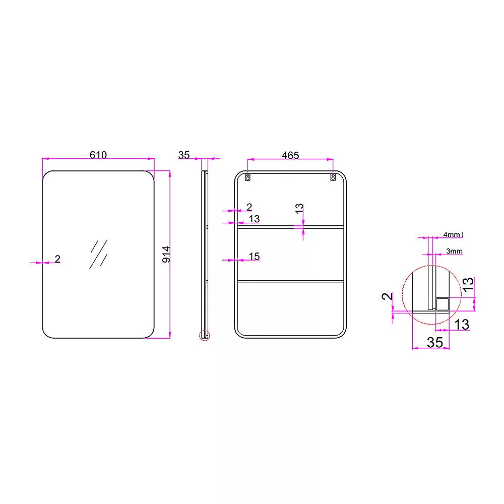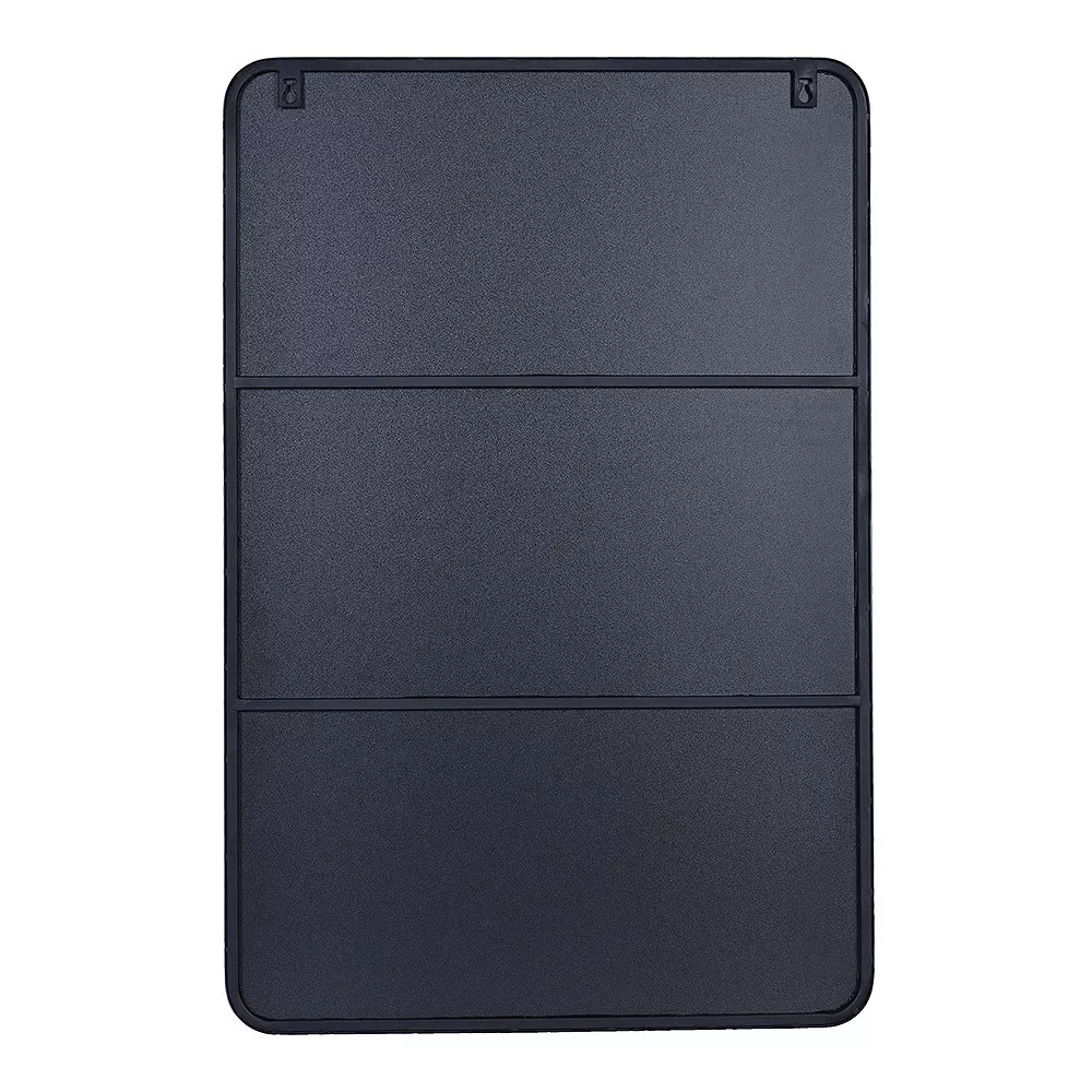 The Rectangular Deep Metal Frame Mirror measures 24 inches in width and 36 inches in length. Its pronounced frame cradles a stunning modern mirror perfectly and mimics a beautiful glass tray upright. Serve your guest in style and create an instant focal point in your home. Curved corners soften the look. Metal frame. Simple contemporary frame. Great for any bathroom or entry. Hangs vertically only. Surface Shape: Flat. Purposeful Distressing Type: No Distressing. Mirror Height – Top to Bottom: 36. Mirror Width – Side to Side: 24. Largest Dimension: 36. Trend: Casual. Size: Large (3O-in to under 5O-in H). Edge Type: Polished. Mounting Bracket Included: Yes. Mounting Hardware Included: No. Tilting: No. Shelf Included: No.