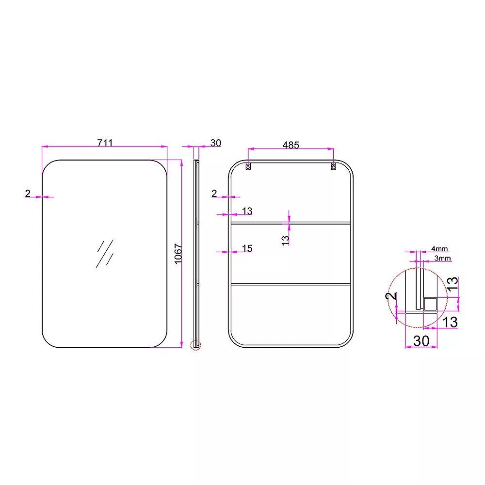 The Rectangular Metal Frame Mirror is the distance cousin of our round version. Keeping with family traditions, the rectangular option features rounded corners to soften the visual appeal. At 28 inches in width and 42 inches in length, the Rectangular Metal Frame Mirror is fully prepared to aptly satisfy the minimalist designer in you. Clean and modern look. Metal frame. Simple contemporary frame. Great for any bathroom or entry. Hangs vertically only. Surface Shape: Flat. Purposeful Distressing Type: No Distressing. Mirror Height – Top to Bottom: 42. Mirror Width – Side to Side: 28. Largest Dimension: 42. Trend: Casual. Size: Large (3O-in to under 5O-in H). Edge Type: Polished. Mounting Bracket Included: Yes. Mounting Hardware Included: No. Tilting: No. Shelf Included: No.