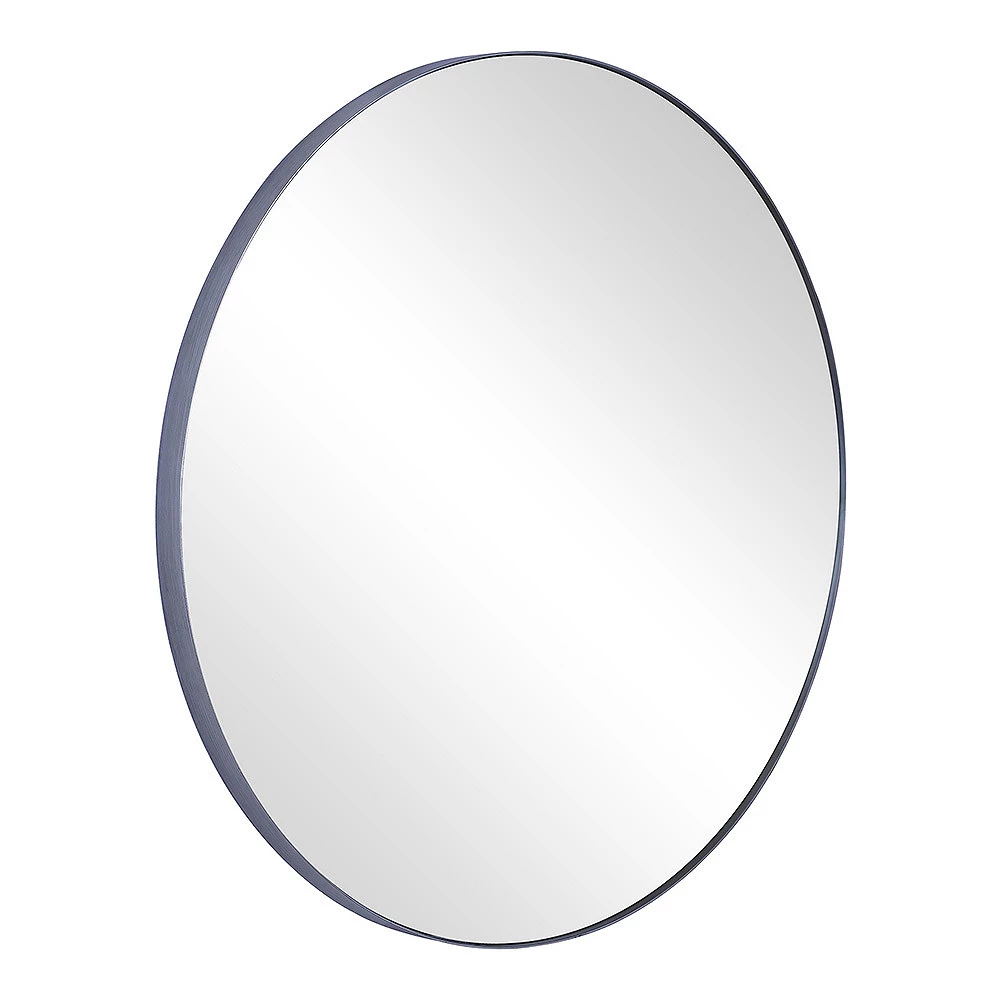 Our Round Metal Frame Mirror is ideal for those who believe less is more. The minimalist details of this piece are fully prepared to make a statement without saying a word. At 32 inches in diameter, the Round Metal Frame Mirror is ready to hang and serve for years to come. Clean and modern look. Metal frame. Simple contemporary frame. Great for any bathroom or entry. 32 round. Surface Shape: Flat. Purposeful Distressing Type: No Distressing. Mirror Height – Top to Bottom: 32. Mirror Width – Side to Side: 32. Largest Dimension: 32. Trend: Casual. Size: Large (3O-in to under 5O-in H). Edge Type: Polished. Mounting Bracket Included: Yes. Mounting Hardware Included: No. Tilting: No. Shelf Included: No.