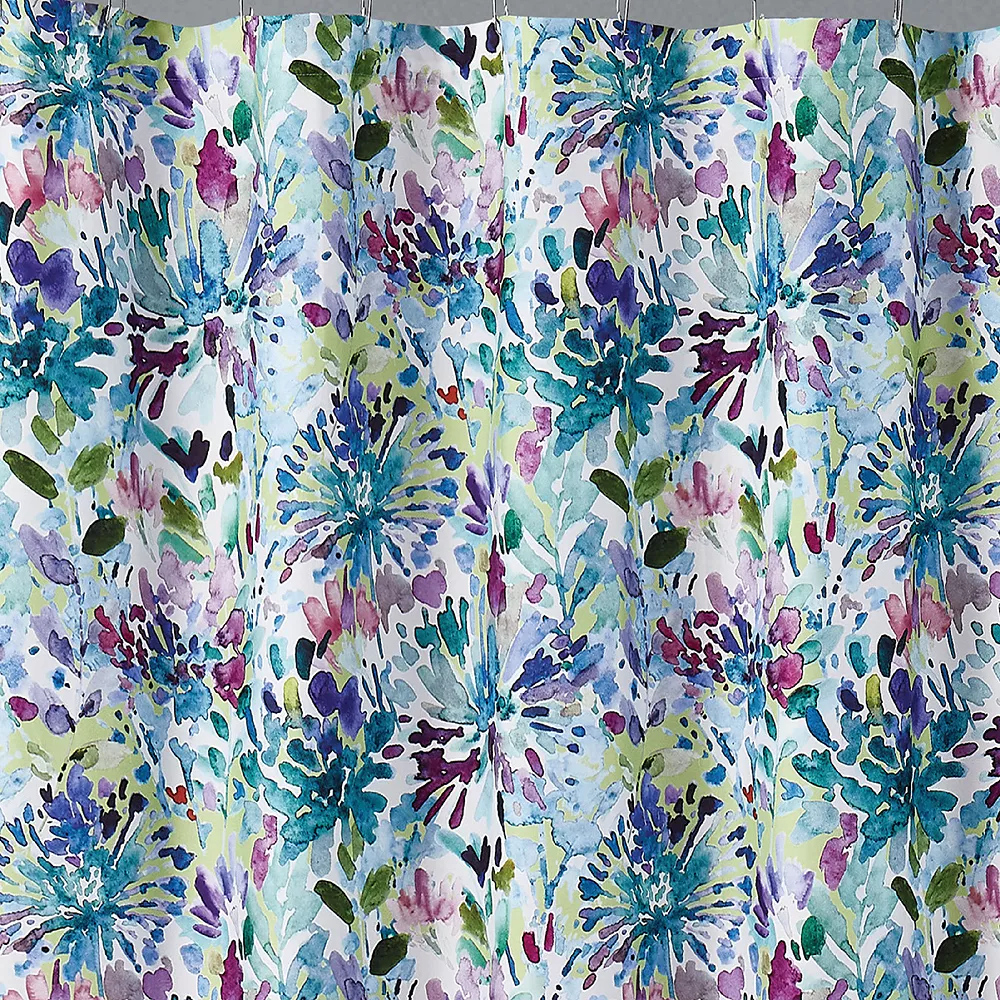 - Wild, fun and bright mix floral pattern is a great pick me up for any room. This detailed digital print on 200 thread count cotton sateen fabric has a soft touch. The bright blue, green and pink shades bring light and color into a variety of room styles.