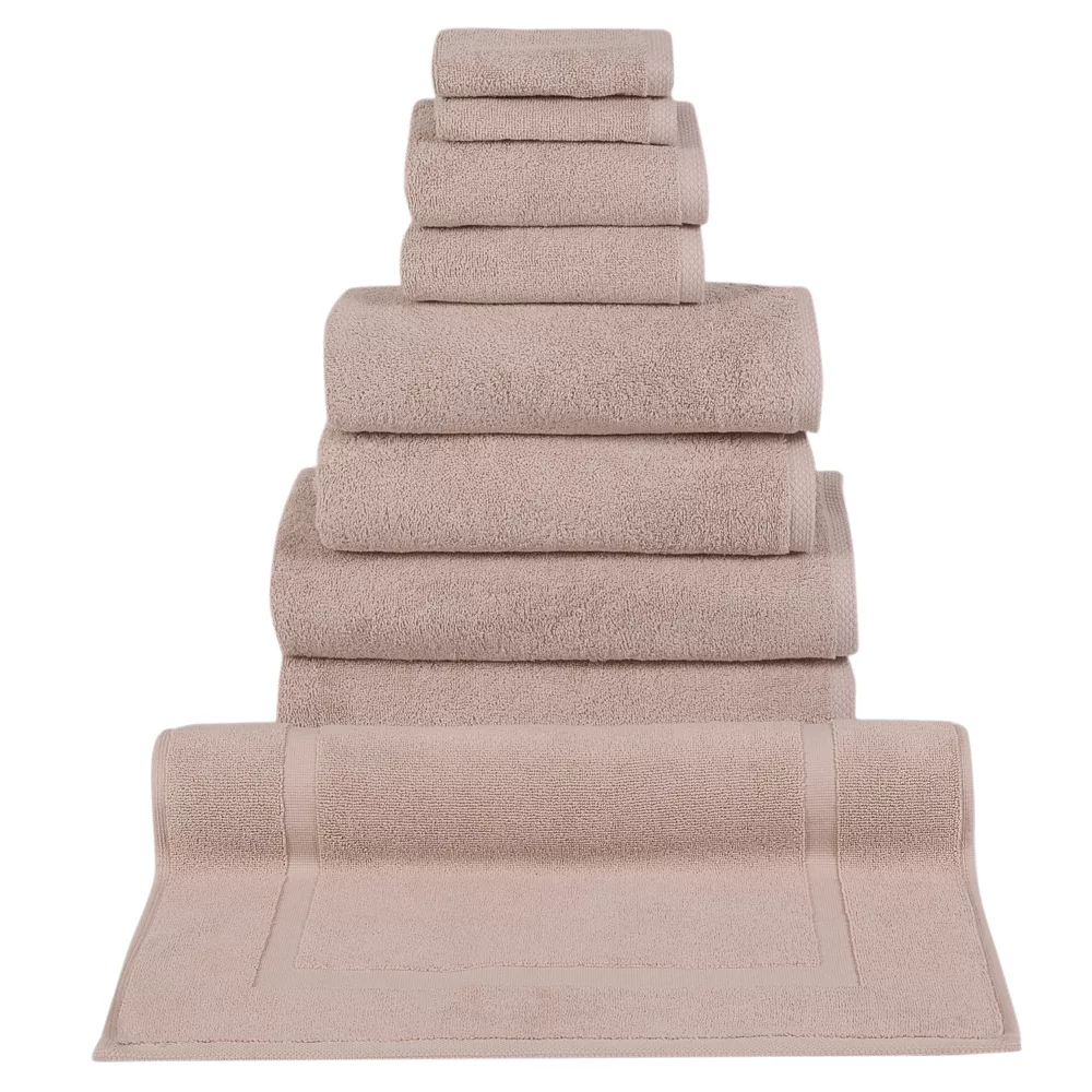 Pamper yourself with this 9 Piece Arsenal Towel Set from Classic Turkish Towel. This set includes two bath towels that are 24 by 48 inches, two hand towels that are 16 by 28 inches, two bath sheets that are 30 by 60 inches, two washcloths that are 12 by 12 inches, and a 20 by 34 inches bath mat. Keep your bathrooms stocked with these elegant hotel and spa quality items. Each item is made from 100 percent Turkish cotton to guarantee that it will feel wonderful and comfortable on your skin. They are also highly absorbent to get you warm and dry faster. When you are ready to wash them, simply put them in the washing machine and they will maintain their softness throughout many uses. They also make a lovely gift set for friends and family members. Give them as a birthday, wedding, graduation, or housewarming present. Treat your self with these fast-drying products that will last you a long time because of their excellent craftsmanship. For combined comfort, durability, and quality, get this 9 Piece Arsenal Towel Set from Classic Turkish Towel.