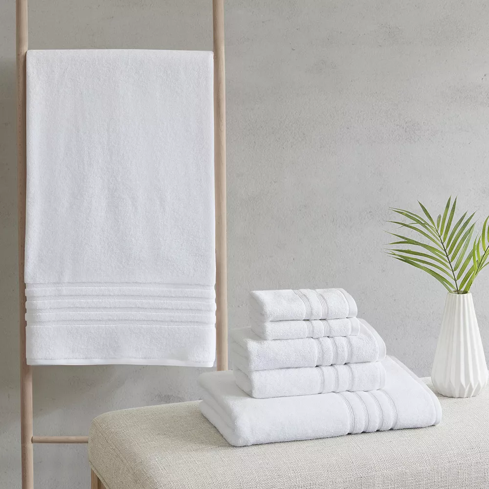 Easily add the perfect look to your bathroom with this Clean Spaces Nurture Sustainable Antimicrobial 6-piece bath towel set.