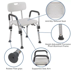 Don’t let mobility issues keep you from your daily upkeep, our bath chair is designed for your safety with arms to help bear your weight. The non-slip seat includes drainage holes to drain soapy water. Minimize buildup, clean with a water based cleaner. The backrest is depth adjustable and removable to turn your bath chair into a bath stool. The medical grade shower chair has an FDA approval for use in healthcare facilities. If you live alone and need the extra assurance to reduce the risk of falling, this free-standing shower chair will bring peace of mind to you and your loved ones. Gain your independence back with a shower chair in your home that can be used in the bathtub and then for your after-shower care routine. If you’ve had surgery and need assistance until you’re fully mobile this bathroom chair will help you on your road to recovery.