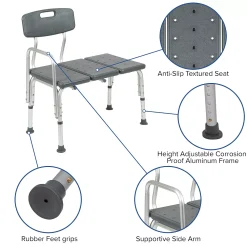 If bathroom safety is your goal at your assisted living facility, then a shower transfer bench should be available to every patient. Transfer chairs allow patients who have trouble with mobility slide their way out of the tub or shower while in a seated position. Suitable for any bathroom, the back installs on either side of the arm. If you plan on traveling, take your bath bench with you to feel at ease at your destination. The shower seat includes drainage holes to provide a better sitting experience allowing soapy water to drain through. Minimize buildup with a water based cleaner. Provide extra security to ease fearful patients who’ve fallen in the past with an FDA approved tub bench with rubber feet to prevent the bath chair from shifting. Don’t risk slipping when a transfer bench chair makes it so easy to transition in and out of the shower.