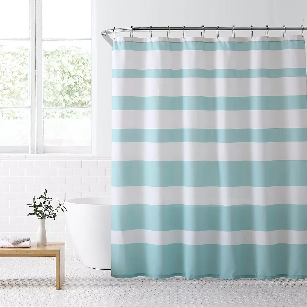 Keep your bathroom fresh and smelling mildew free with this Freshee antimicrobial shower curtain.