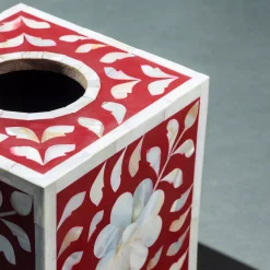 Stunning burgundy meets glimmering mother of pearl in this one of a kind decorative tissue box holder featuring an intricate floral design & craftsmanship which is exclusive to the state of Rajasthan in India. Premium tissue box cover with real inlay work & not just a paint job, a beautiful handcrafted addition to your beautiful home or office.