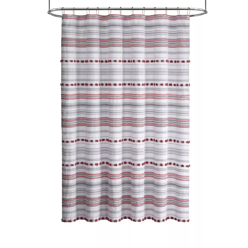 Easily elevate the look and feel of your existing space with this Jade + Oake Teagan Tufted Stripe Microfiber Shower Curtain.
