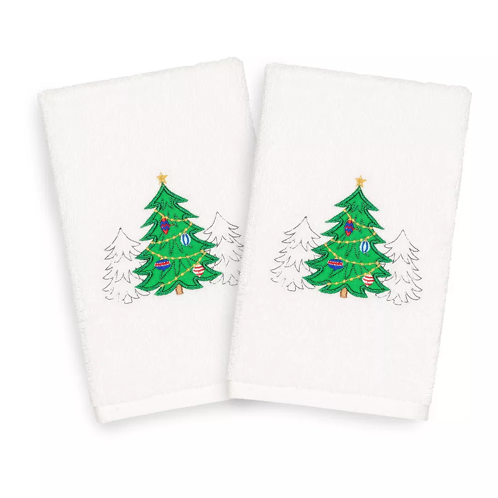 Give your bathroom towel rack a festive Christmas update with this 2-pack hand towel set from Linum Home Textiles.