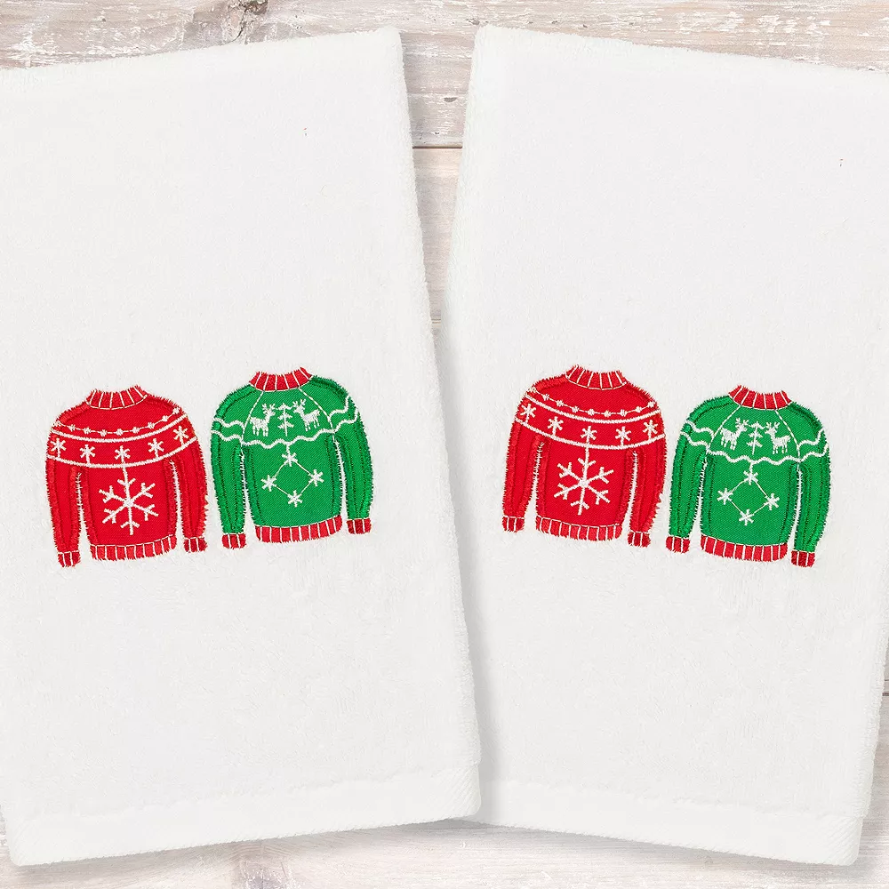 Linum Home Textiles Christmas 2-pack Sweaters Embroidered Luxury Turkish Cotton Hand Towels