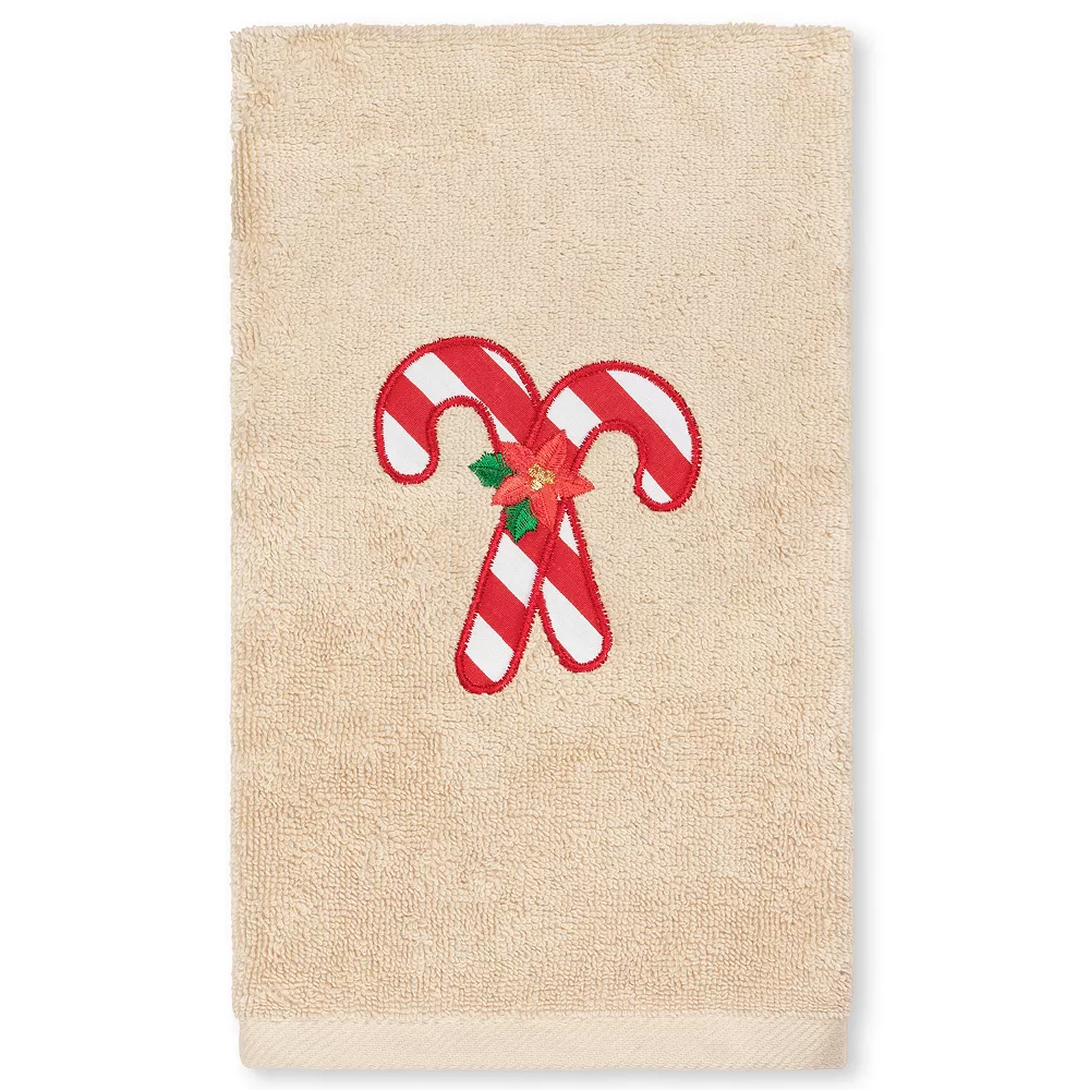Linum Home Textiles Christmas Candy Canes Embroidered Luxury Turkish Cotton Hand Towel