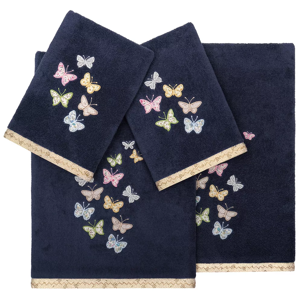 Add a refreshing touch to your space with this set of embellished bath towels from Linum Home Textiles.