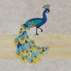 - Embroidered peacock design