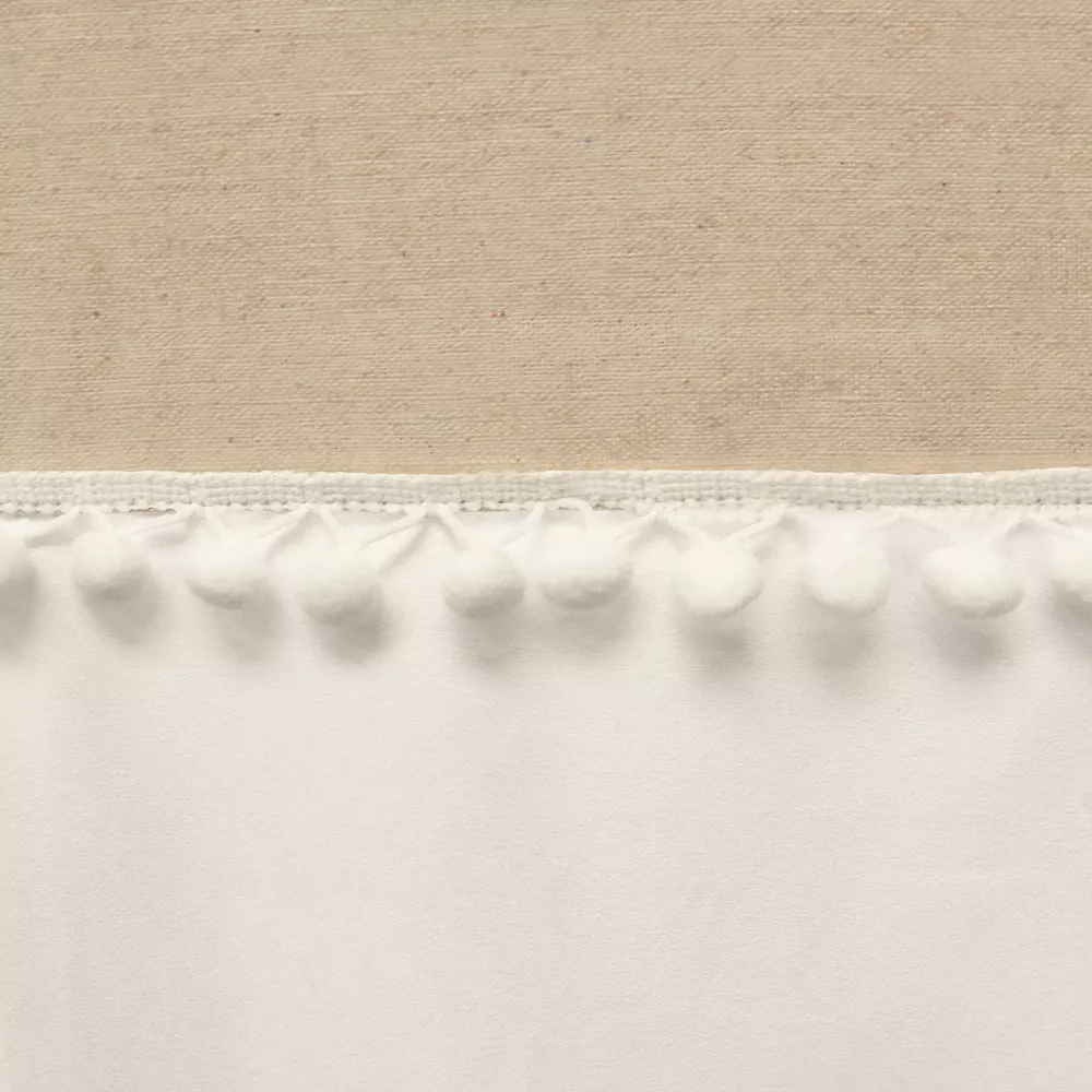 Beautiful linen fabric is lined with pom poms, perfect for lovers of simple and rustic style home decor with just the right amount of femininity.
