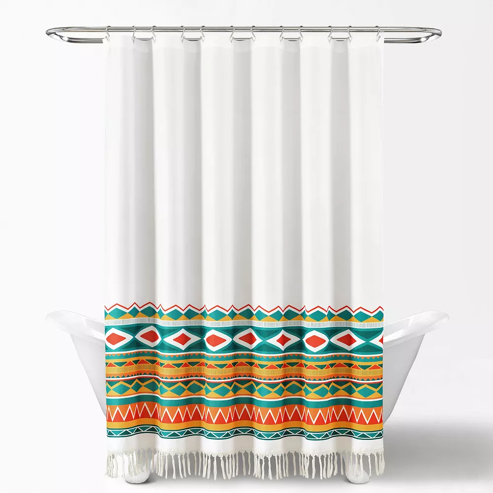 Elevate the look of your existing decor with this trendy Lush Decor Boho Viviane Geo Shower Curtain.