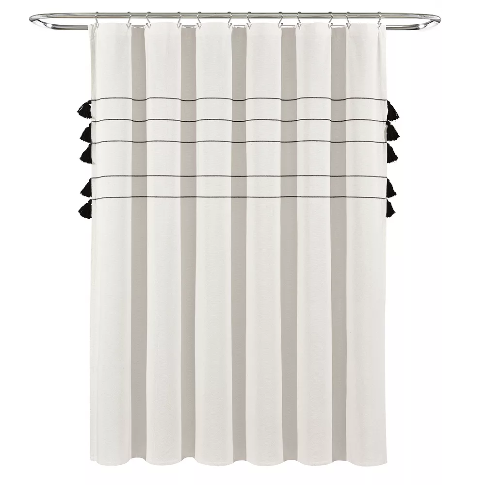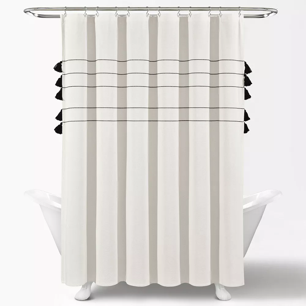 Update your bathroom with this yarn dyed recycled cotton shower curtain from Lush Decor.