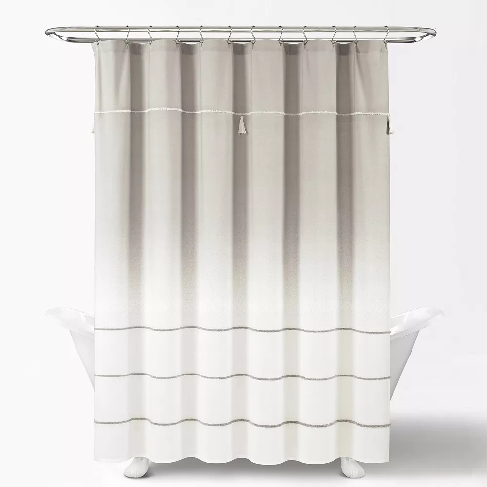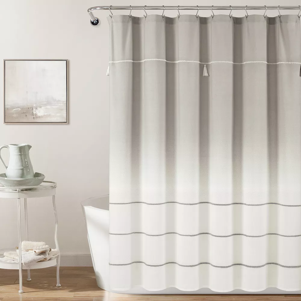 Easily elevate the look and feel of your space with this stylish Lush Decor Ombre Embroidery Tassel Cotton Shower Curtain.