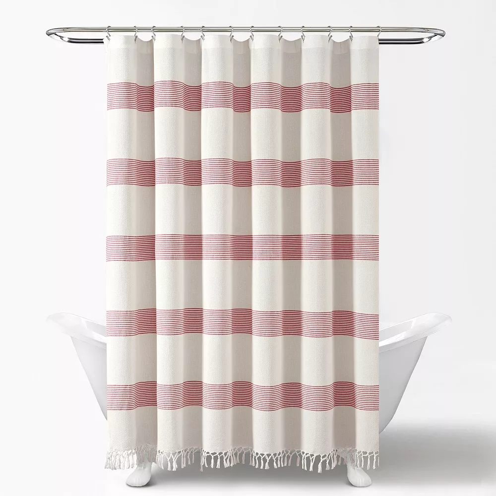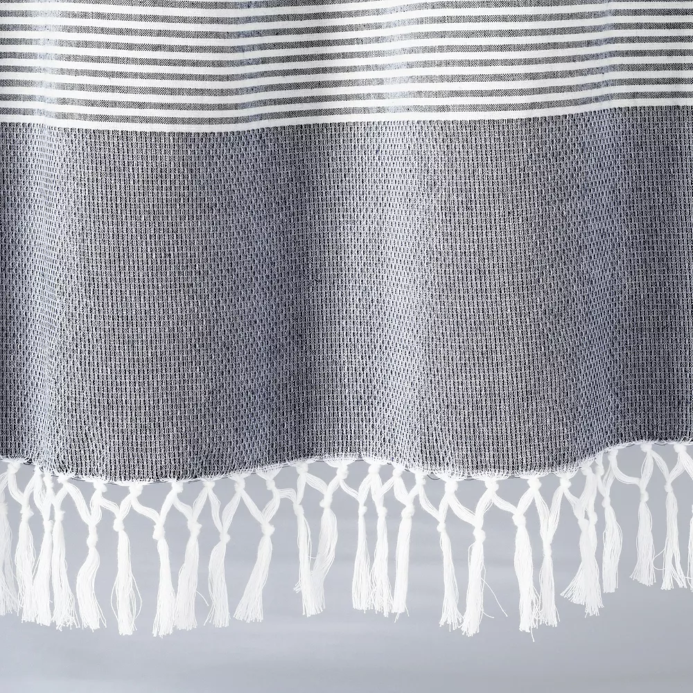 - Features rows of pinstripes as well as knotted tassels that runs across the bottom