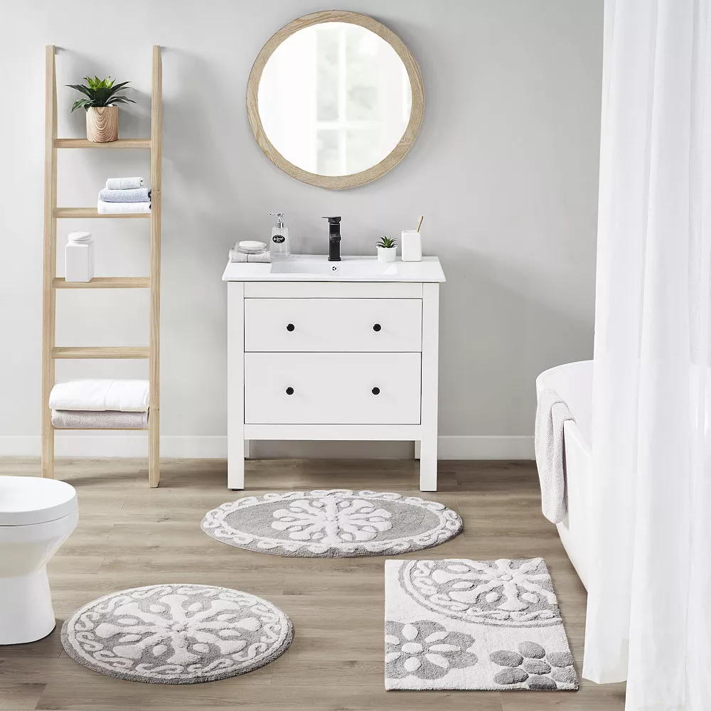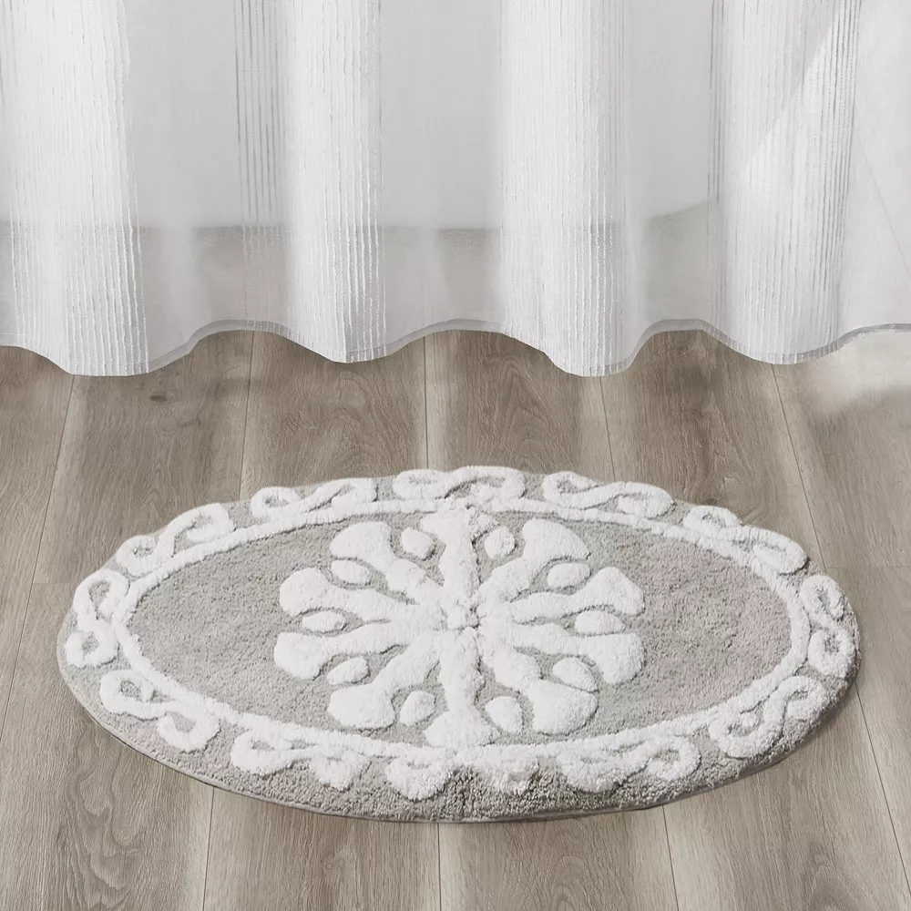 Accent the look of your existing bath decor with this Madison Park Marrakesh Medallion Cotton Tufted Oval Bath Rug.