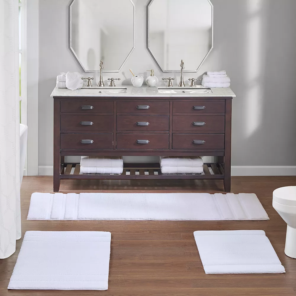 This marshmallow bath rug offers cloud-like softness for added comfort.