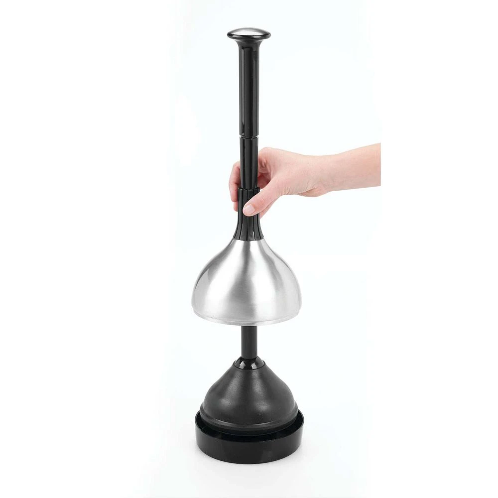 Keep your bathroom neat and clean with the Toilet Plunger and Holder by mDesign. The heavy duty plunger creates a tight seal to rid toilets, bathtub drains, and kitchen sinks of clogs. The plunger fits neatly into the holder, making storage simple while keeping bathroom floors clean and dry. The compact design fits into even the smallest of bathroom spaces, making it easy to stash out of sight!