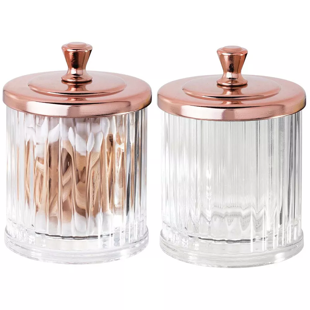 Keep cosmetics and other daily essentials organized on your bathroom vanity or a dresser top with the Bathroom Vanity Storage Organizer Canister from mDesign. Use these jars for everything from cotton balls to cosmetic wedges, makeup swabs, bath salts, bath bombs, small soaps and more. The classic styling and decorative lids add a touch of class anywhere they are used.