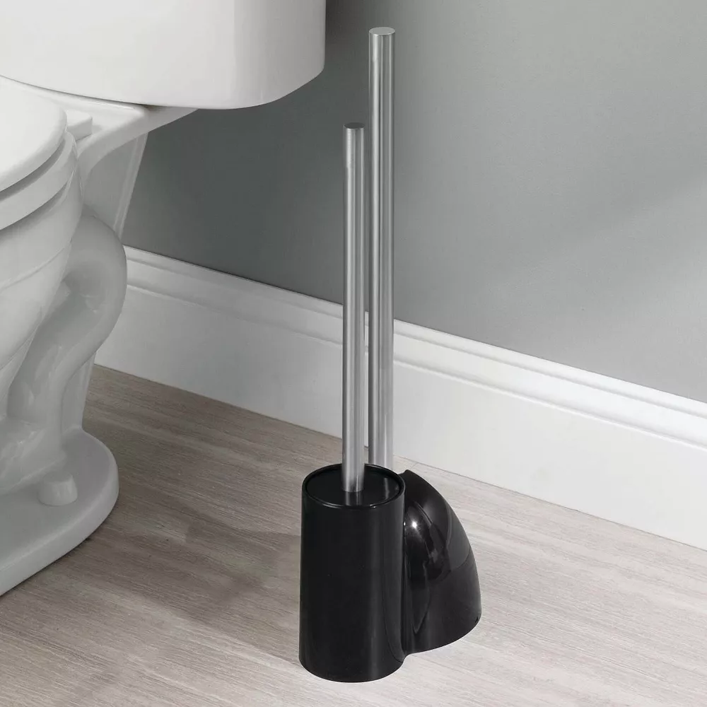 Keep your bathroom neat and clean with the Toilet Plunger and Bowl Brush Combo Set by mDesign. The heavy-duty plunger creates a tight seal to rid toilets, bathtub drains and kitchen sinks of clogs. Use the sturdy-bristled brush head to deep clean, even hard to reach places, for a lasting shine. The bowl brush and plunger fit neatly into the holder, making storage simple while keeping bathroom floors clean and dry. The compact design fits into even the smallest of bathroom spaces, making it easy to stash out of sight!