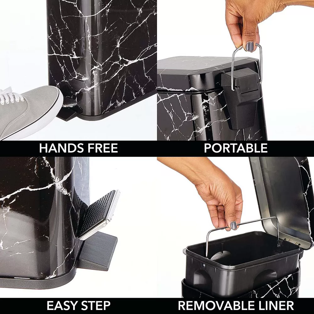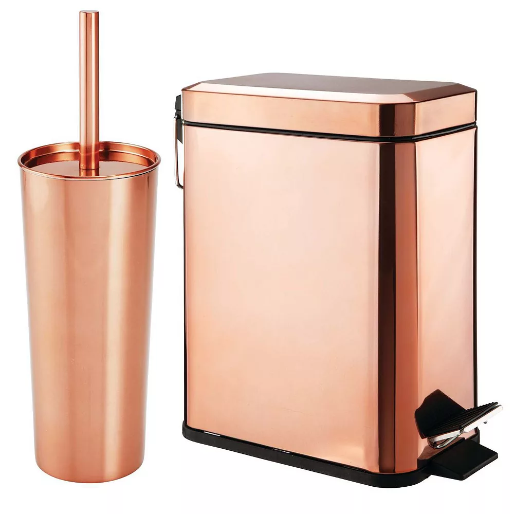 Keep your bathroom neat and clean with the Bowl Brush and Wastebasket Combo Set by mDesign.The wastebasket trash can is perfect for collecting trash or recycle items at the bathroom vanity or next to the toilet. The toilet bowl brush features a stylish housing to conceal your cleaning tool when not in use and cleans under the bowl rim and in hard-to-reach areas! mDesign – Solutions for Home. Solutions for Life.