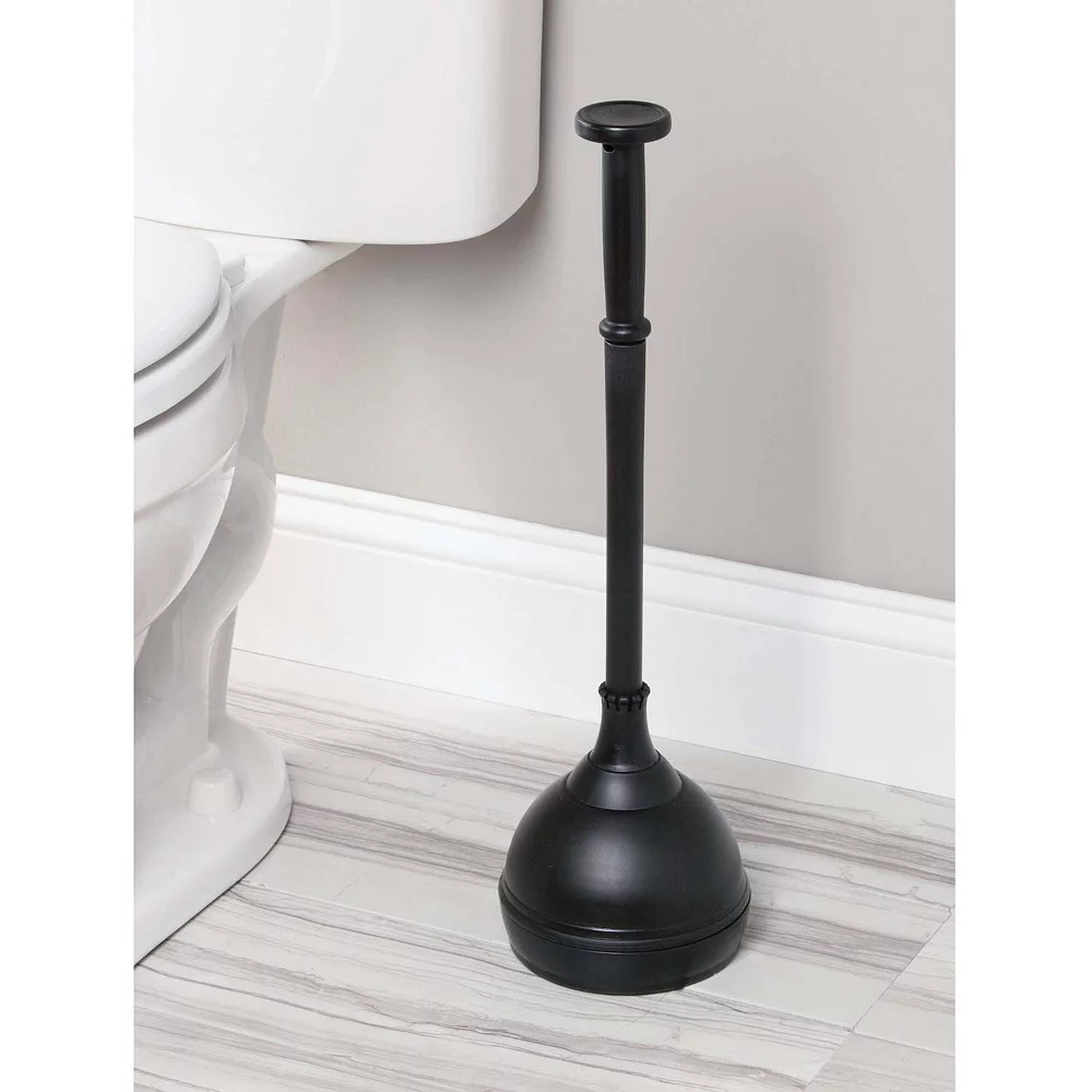 Keep your bathroom neat and clean with this Toilet Plunger and Holder by mDesign. The heavy-duty plunger creates a tight seal to rid toilets, bathtub drains, and kitchen sinks of clogs. The plunger fits neatly into the holder, making storage simple while keeping bathroom floors clean and dry. The compact design fits into even the smallest of bathroom spaces, making it easy to stash out of sight! mDesign – Solutions for Home. Solutions for Life.