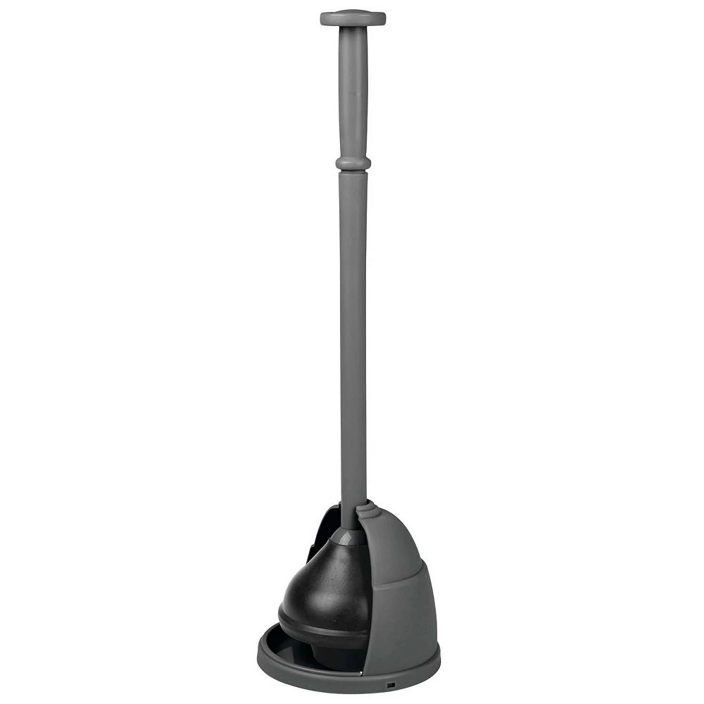 Keep your bathroom neat and clean with this Toilet Plunger and Holder by mDesign. The heavy-duty plunger creates a tight seal to rid toilets, bathtub drains and kitchen sinks of clogs. The plunger fits neatly into the holder, making storage simple while keeping bathroom floors clean and dry. The compact design fits into even the smallest of bathroom spaces, making it easy to stash out of sight! mDesign – Solutions for Home. Solutions for Life.