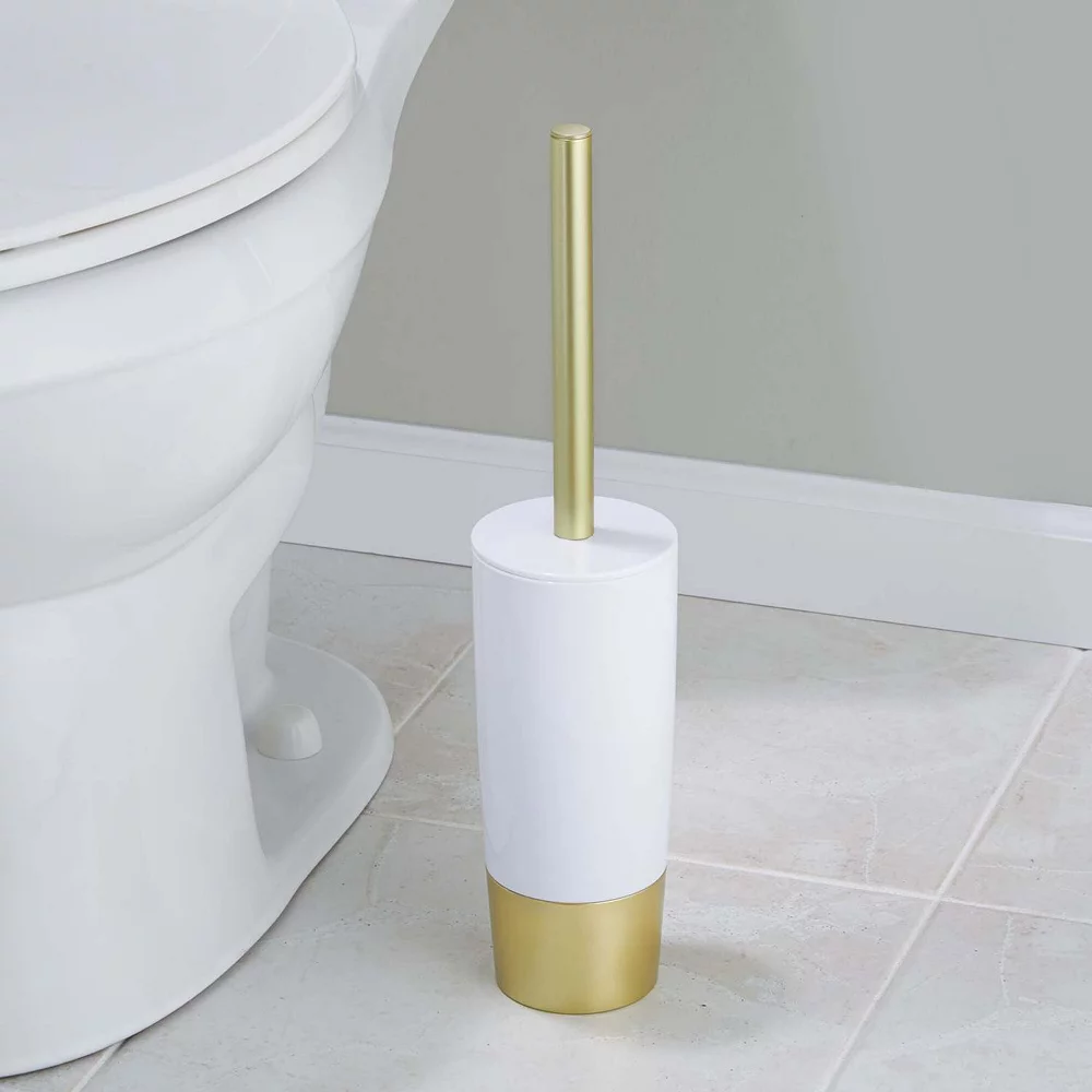 Keep your bathroom squeaky clean with the Toilet Bowl Brush and Holder by mDesign. Use the sturdy-bristled brush head to deep clean, even hard to reach places, for a lasting shine. The brush fits neatly into the holder, making storage simple while keeping bathroom floors clean and dry. The compact design fits into even the smallest of bathroom spaces, making it easy to stash out of sight!