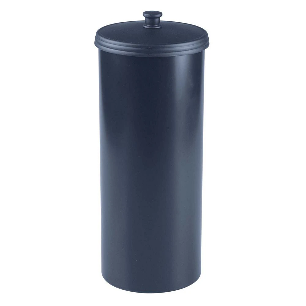 Keep toilet paper rolls handy and stored discreetly with this Toilet Paper Holder Stand from mDesign. This holder has room to stash as many as three extra rolls. Easily grab backup rolls as needed from the open top and replace the included lid for discreet storage. The closed canister design keeps rolls off of the bathroom floor, so they always stay clean and dry. The free-standing appearance of this versatile holder let you move it anywhere you want or need. mDesign – Solutions for Home. Solutions for Life.