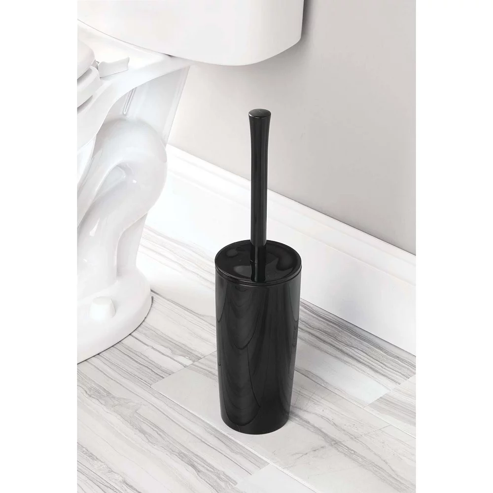 - STYLISH STORAGE: Toilet brush with a tall, slim holder provides simple and discreet storage that keeps floors clean and dry