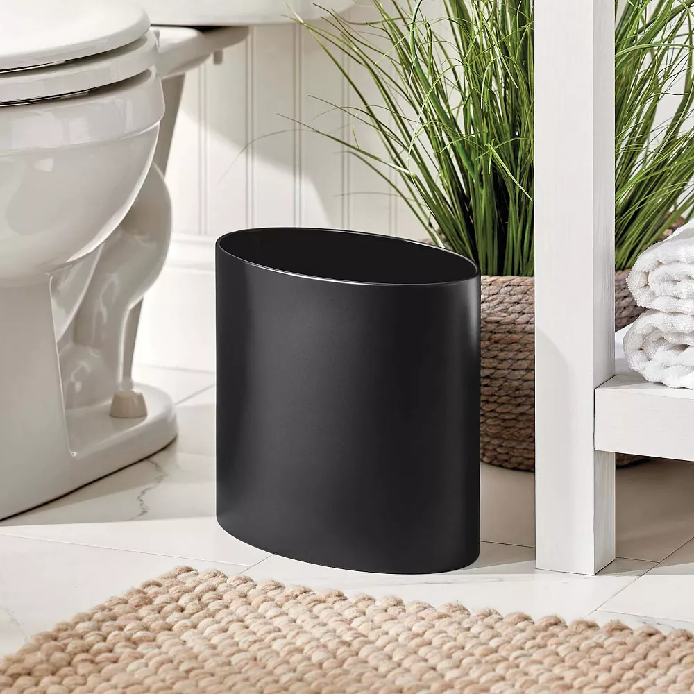 This Metal Oval Trash Can Wastebasket by mDesign is perfectly sized for smaller spaces in your master or guest bathroom but still has plenty of room for your recyclables and garbage. Made of high-quality durable materials, this small can withstands everyday use. It can be used for trash, recycling, or storing household items. The slim oval design has a sleek, modern finish that perfectly complements any existing decor. mDesign – Solutions for Home. Solutions for Life.