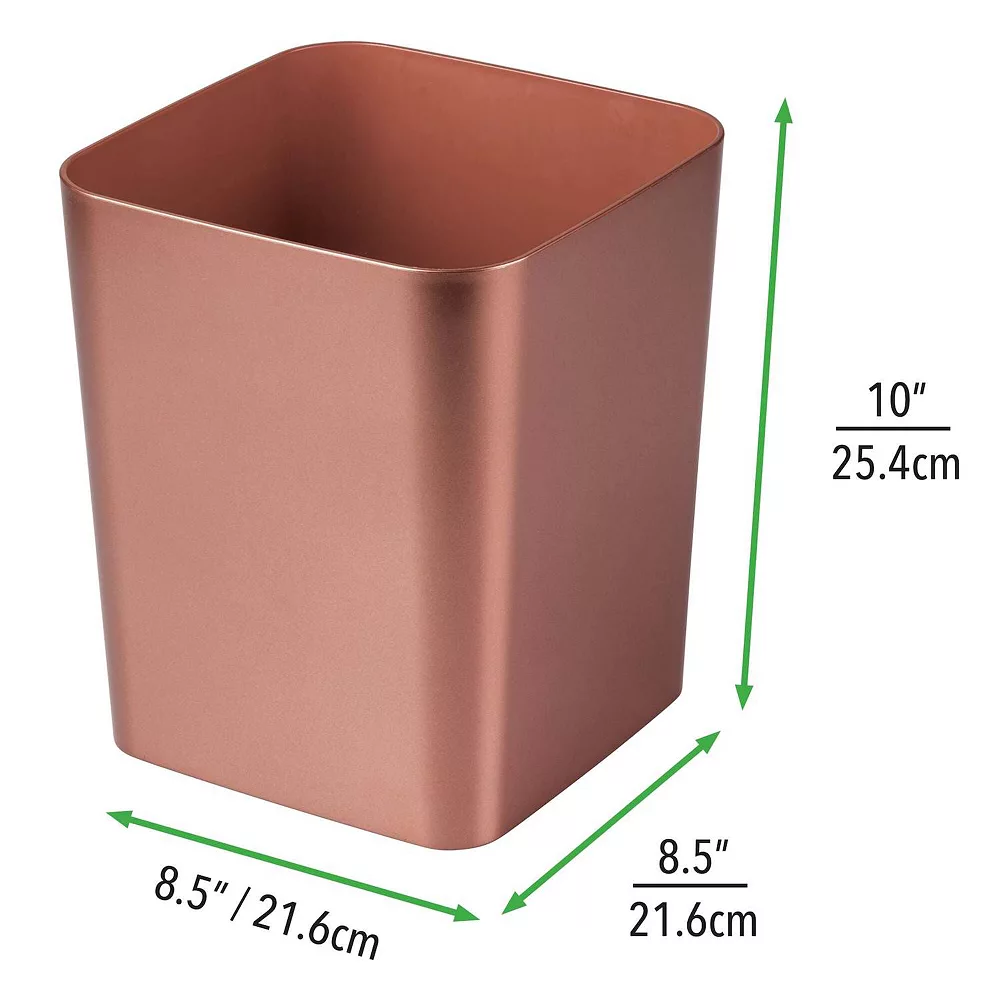 The mDesign trash can wastebaskets are sized perfectly for smaller spaces, but still have plenty of room for your recyclables and garbage. Made of high quality durable materials, these cans will hold up to everyday use. They can be used for trash, recycling, or storing household items. The beautiful square design combined with the modern metal finishes make them the perfect complement to any home.