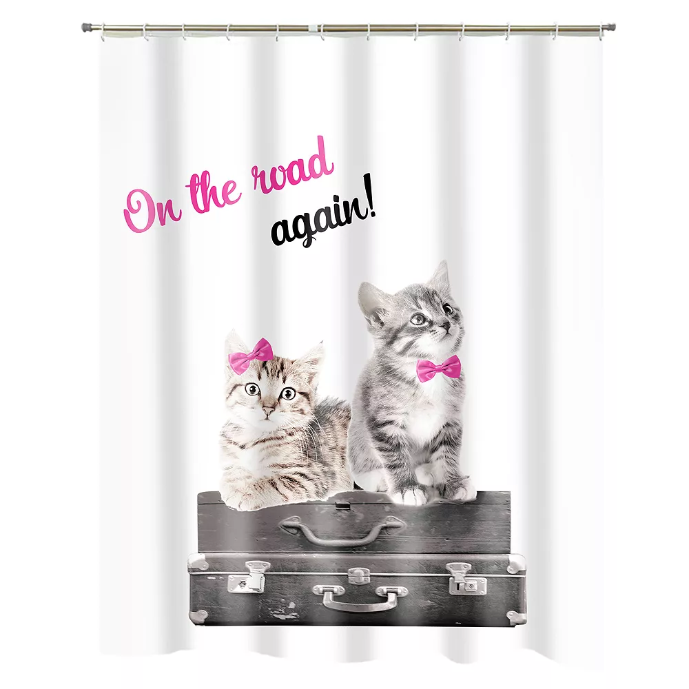 Add an adorable look to your shower with this kittens on the road shower curtain from Popular Bath.